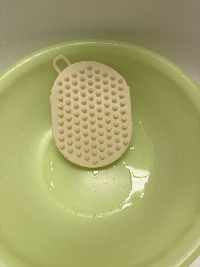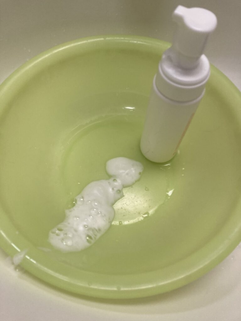 5、よーくぬるま湯で体を濡らして、※泡石鹸で洗う→手足 身体 おしり(この時ダメ元校門絞りにチャレンジ8時20分の位置で絞る)最後に顔(嫌がるので顎を片手で抑えて上を向かせ、※スポンジでこする)の順番で